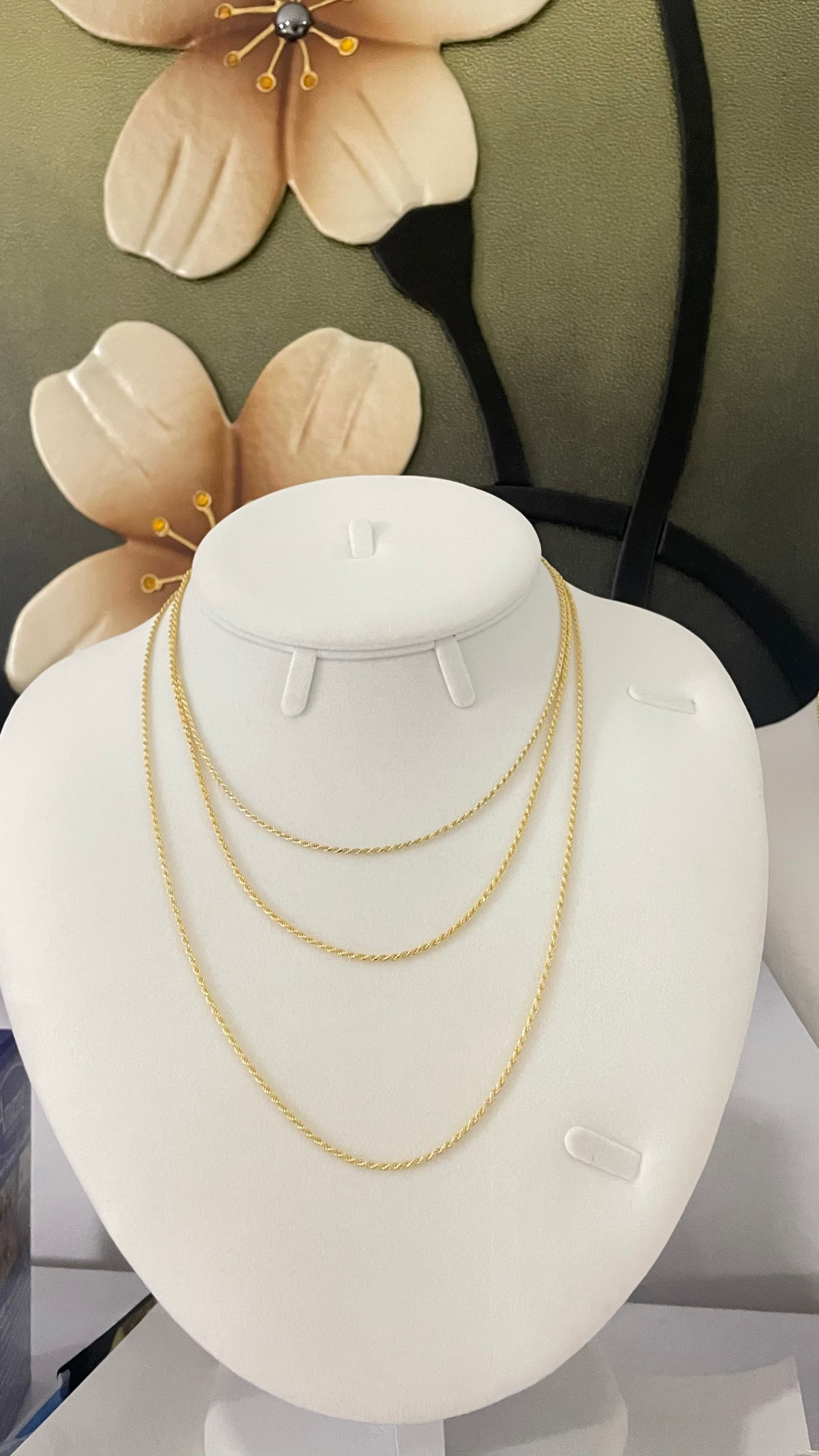 Nuestra cadena estilo soga de 1.5mm combina un diseño trenzado fino con el brillo cálido del baño de oro 14kt sobre plata 925 italiana. Ideal para quienes buscan una pieza ligera, elegante y perfecta para uso diario o para complementar con un pendant.